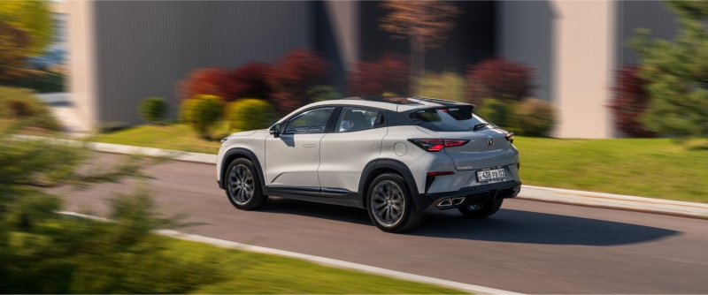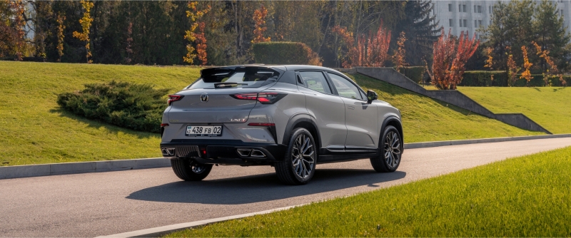 • Екпінді силуэтті артқы спойлерге айналатын көлбеу шатыр және шанақтың жоғары орталық сызығы ерекшелендіреді.